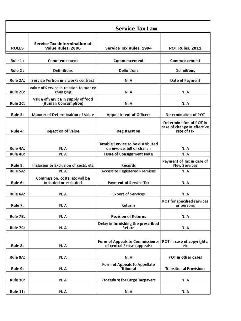 Service Tax Law Rules Service Tax Rules, 1994 POT Rules, 2011 Service